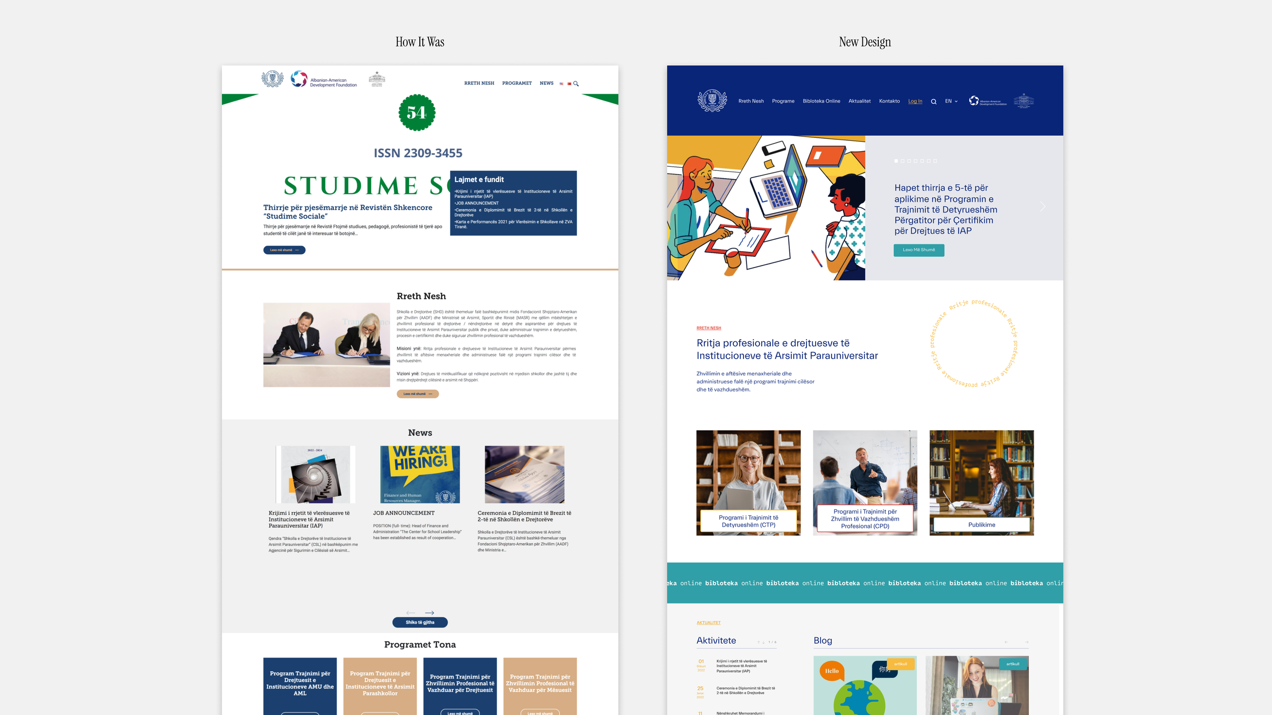 The Center for School Leadership is a partnership between the Albanian-American Development Foundation (AADF) and the Ministry of Education, Sports, and Youth (MASR). The design refreshens the identity of the Center, giving it life through an organized and better established layout, where information is easily accessed.